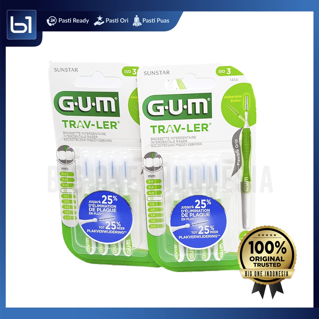 GUM Trav-ler 1414 Original, GUM Brush Floss Travler 1414 Green 1.1, Sikat Celah Gigi GUM Ortho Hijau, GUM Interdental Brush, Gum Ortho Proxabrush