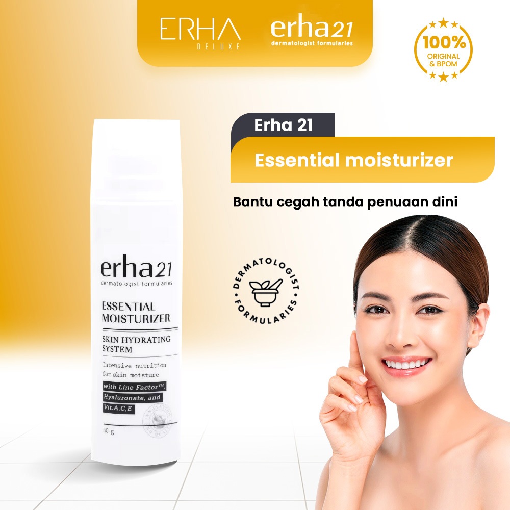 ERHA Essential Moisturizer Cream, Krim Pelembab Wajah Anti Aging dgn Niacinamide + VIT E