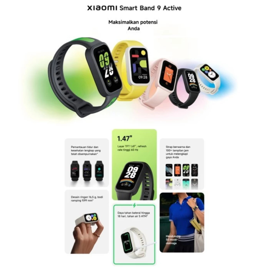 Xiaomi Smart Band 9 Active 1.47 Inch 18 Days Battery Life Tahan Air 5ATM Garansi Resmi