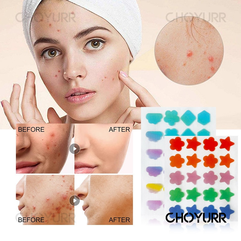 [Clearance sale]36Pcs Acne Pimple Patch / Stiker Jerawat Lucu / Stiker Jerawat Berwarna-warni / Cute Star&Heart&Bunga Shape Perawatan Kulit Patch Jerawat 24pcs Pimple Patch Penghilang Jerawat Acnes-CH