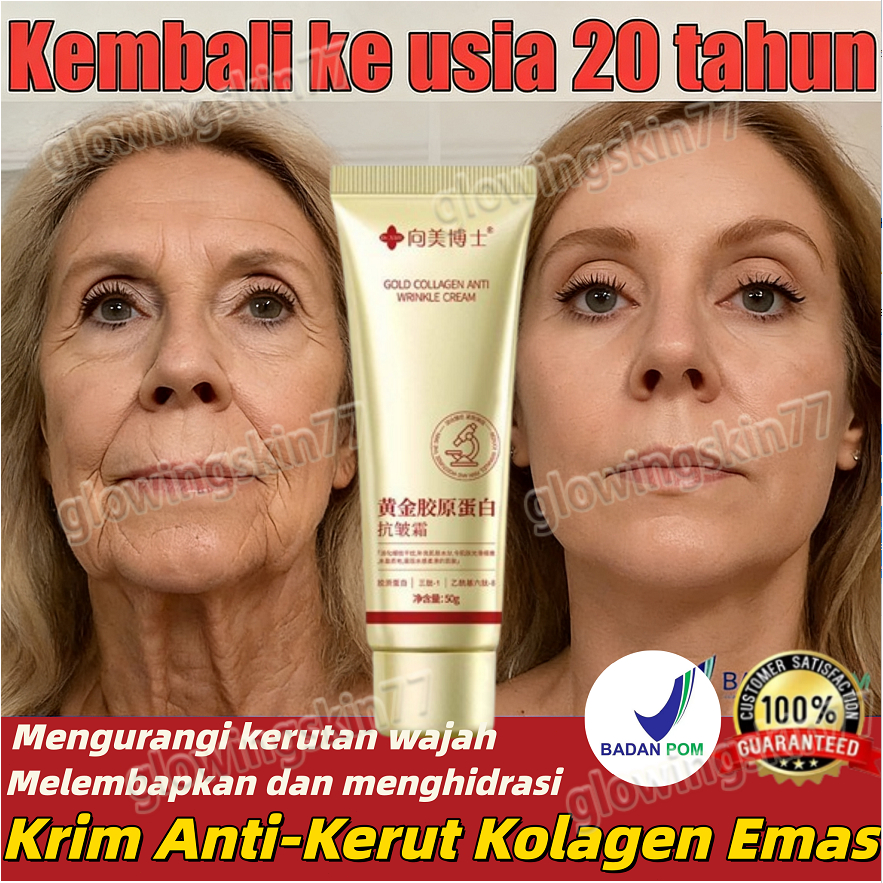 [COD]50g Krim Anti-Kerutan Kolagen Emas/Anti-Kerut Anti-Penuaan Krim/Gold Collagen Anti-Wrinkle Cream/Krim Kolagen Anti Kerutan/Pelembab Pemutih
