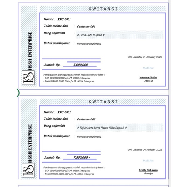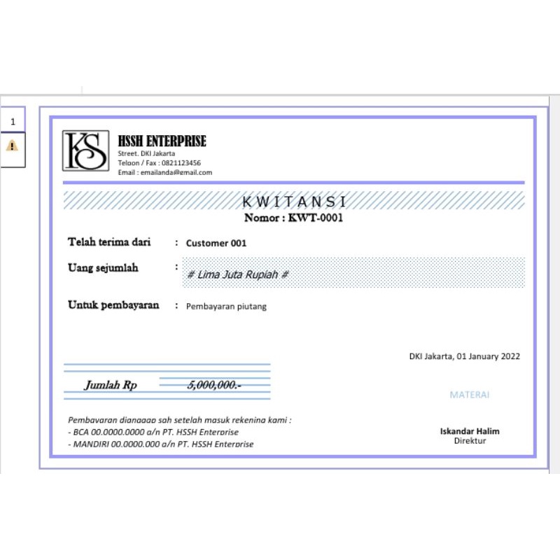 Format Kwitansi Excel