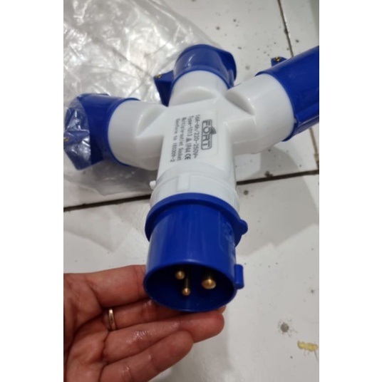 Fort CEE Tee 3 cabang Industrial Plug Soket 3 pin 16A 3 way 1013 IP 44