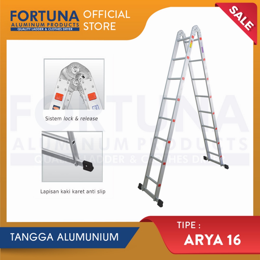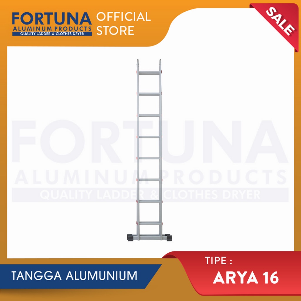 Fortuna Tangga Lipat Arya 16 Step 250 Cm | Tangga Aluminium Silver | Beban Maks 150 Kg