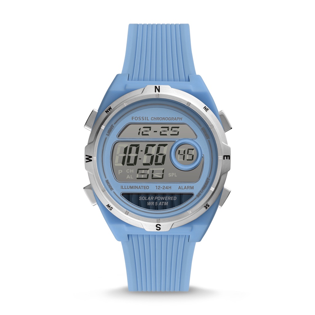 Fossil Everett Solar-Powered Digital Blue Silicone Jam Wanita - ES5196