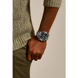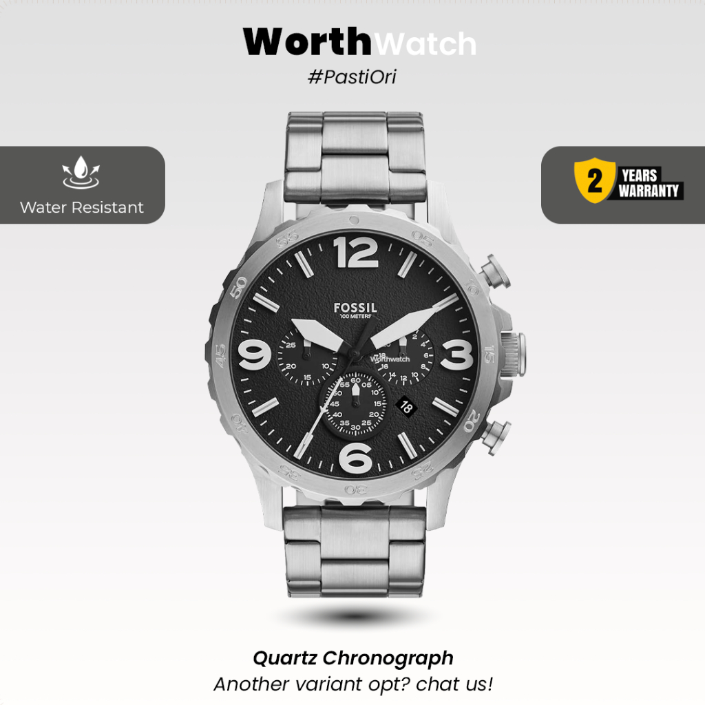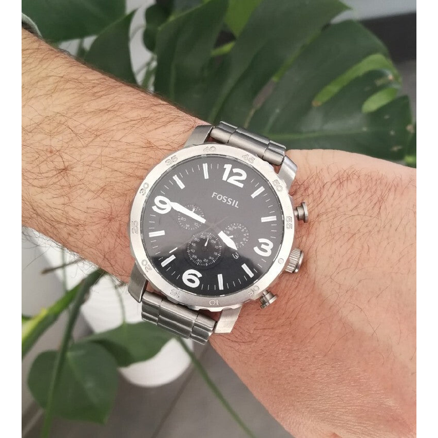 Jam Tangan Pria Besar Nate Chronograph Black Dial Silver Stainless Steel Mewah BNIB 50mm