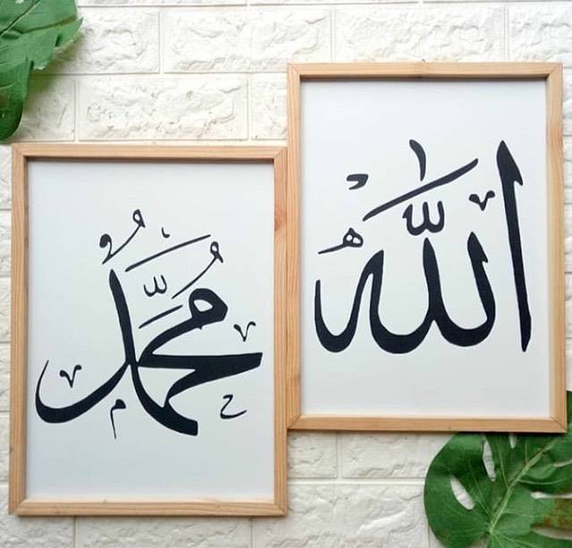 Foto Kaligrafi ALLAH MUHAMMAD + Bingkai Kayu