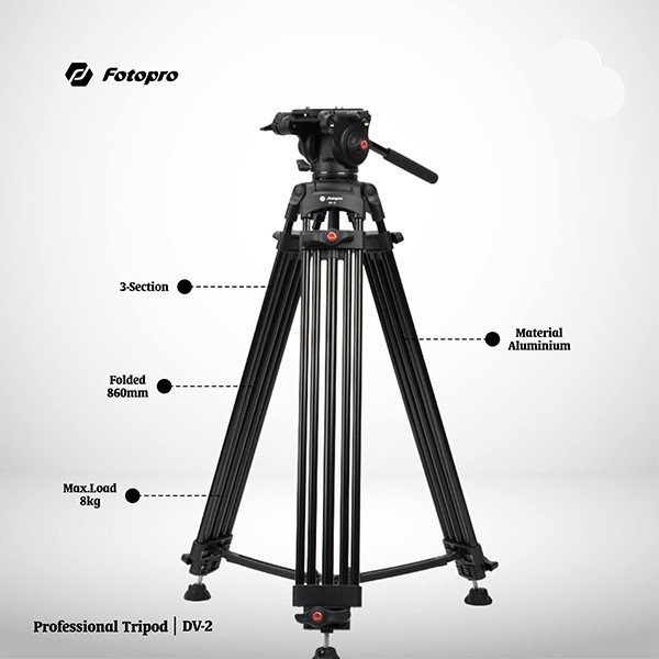 Fotopro DV-2 Profesional Video Tripod With Fluid Head Max Load 8kg