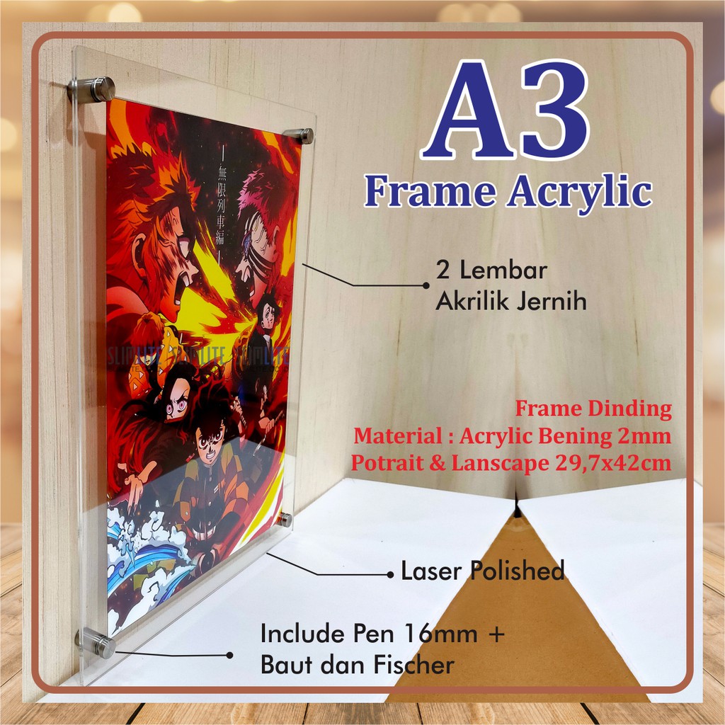 Frame/Bingkai Akrilik Display Poster Acrylic Dinding ukuran kertas A3 2mm | Acrylic Poster A3 2mm | Frame Poster Acrylic A3 2mm | Bingkai Poster Akrilik A3 2mm | Akrilik Photo Poster A3 2mm