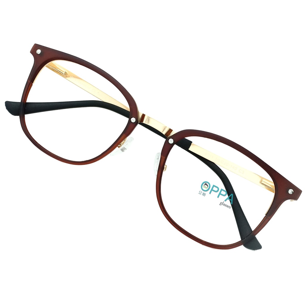 Frame Kacamata Korea Pria Wanita Oppaglasses OP41 BWGD Brown Minus Square