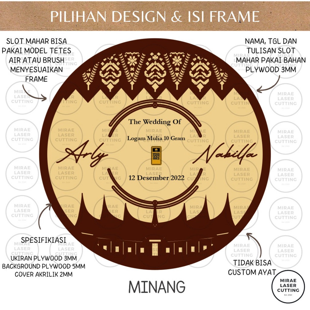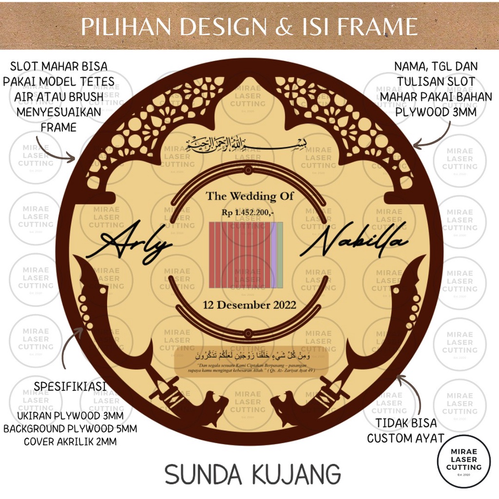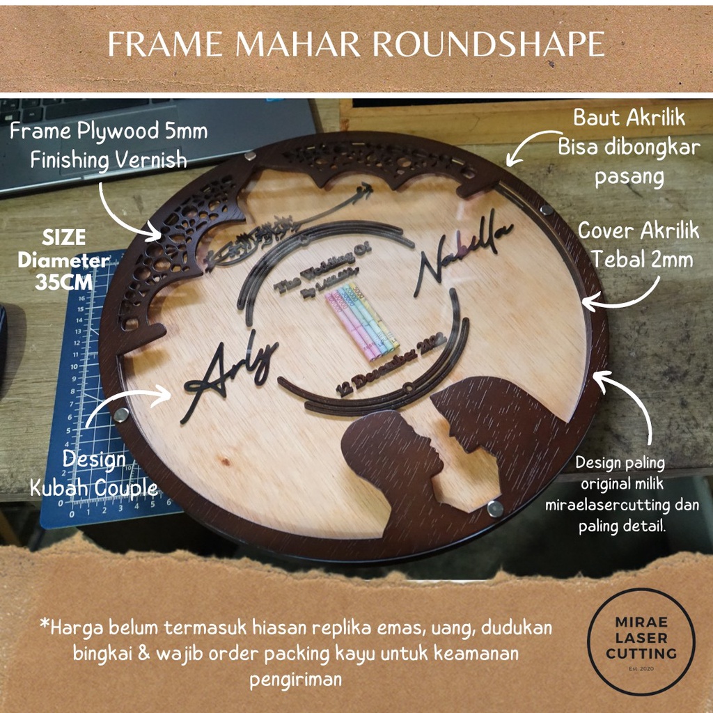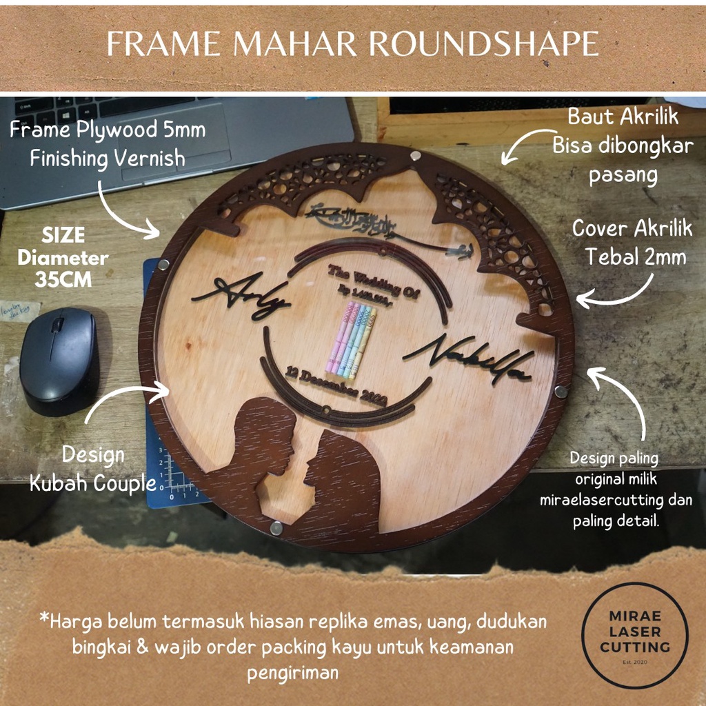 Frame Mahar Islami Bulat / Frame Mahar Round Endless Romance / Mahar Laser Cutting / Mahar Bulat