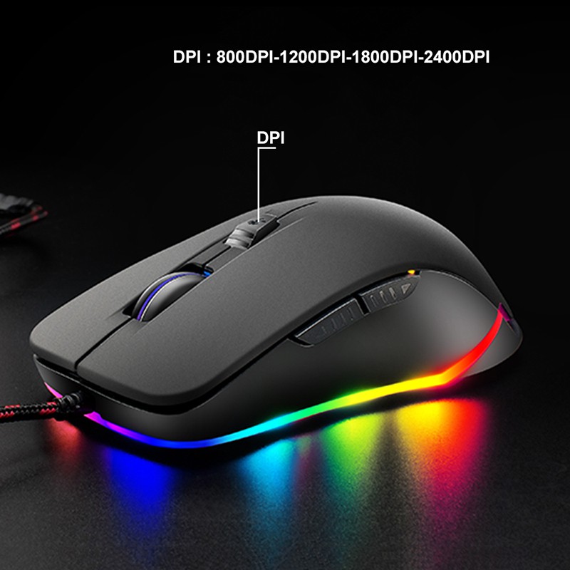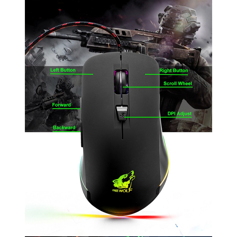 Free Wolf Mouse Gaming USB 2400 DPI dengan LED RGB - V6