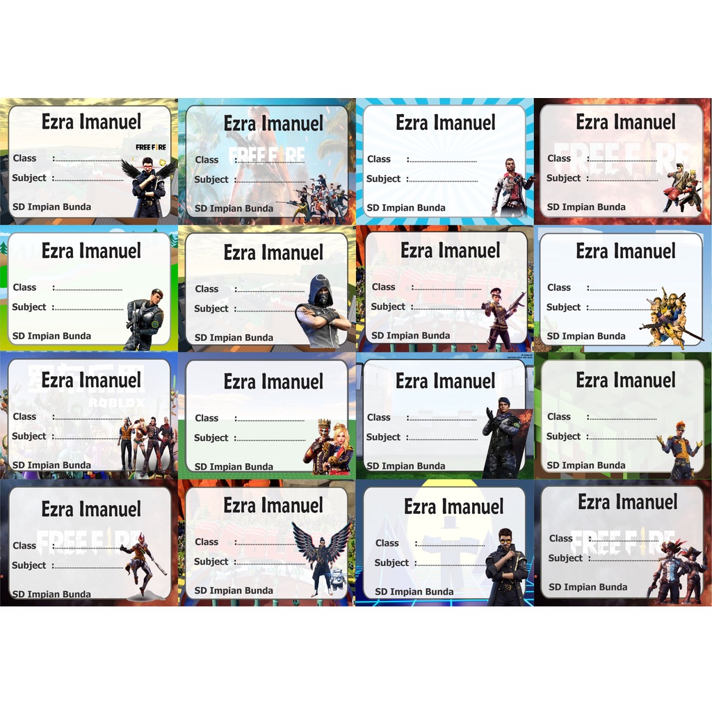 Free fire LAbel stiker buku nama kelas mapel custom