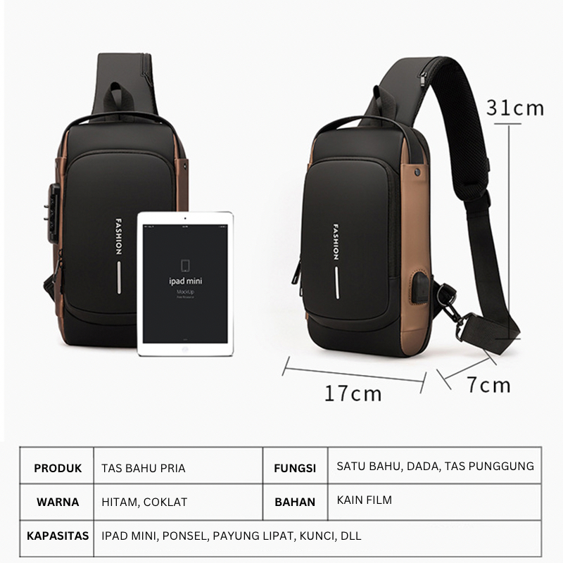 Freeknight Tas Selempang Pria Multifungsi USB Charger Anti Maling Shoulder Bag Premium Waterproof Tas Slempang Pria Pin Lock Trendy Sling Bag Fashion TS717