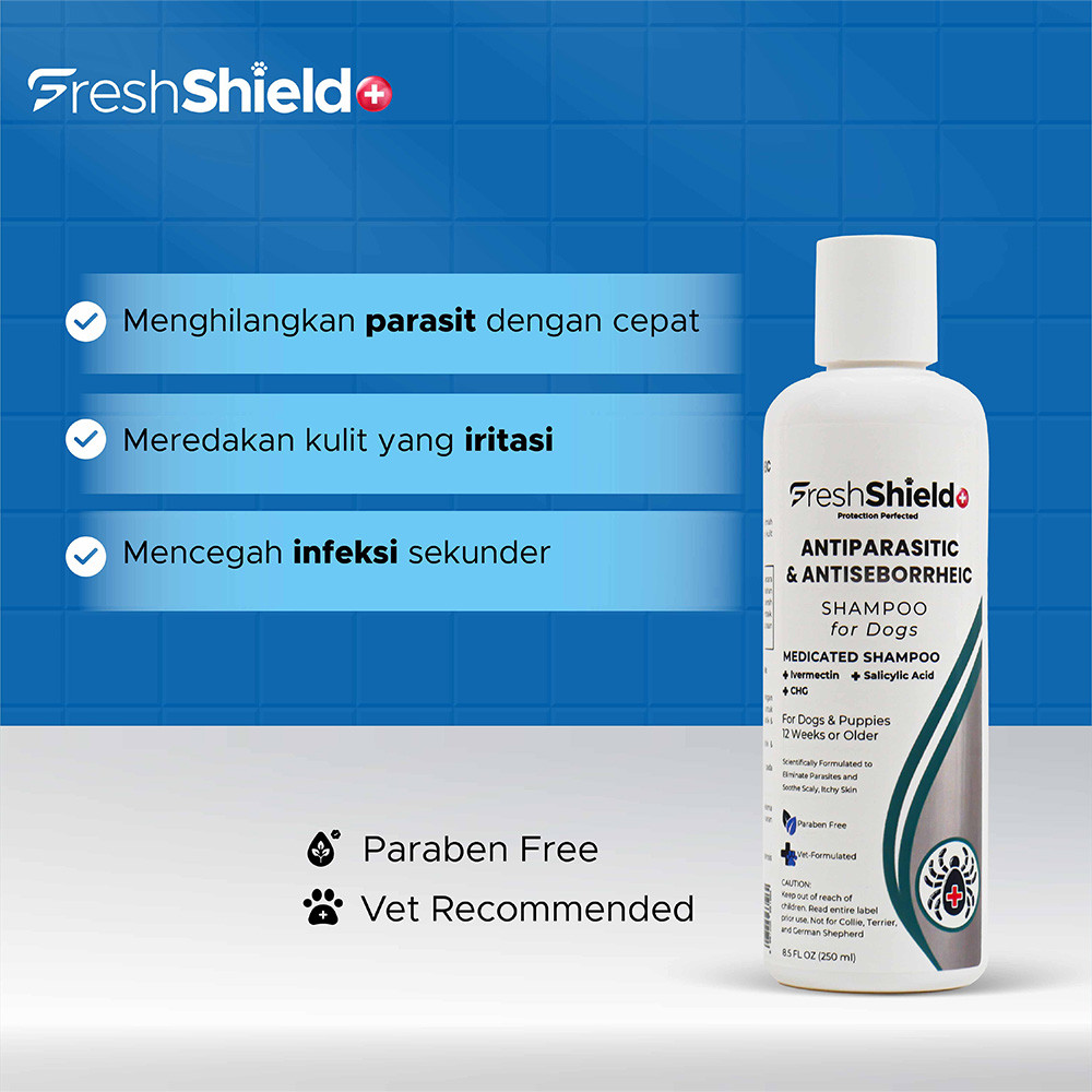 Fresh Shield+ Shampoo Anjing Antiparasit, Antiseborheik & Antiseptik