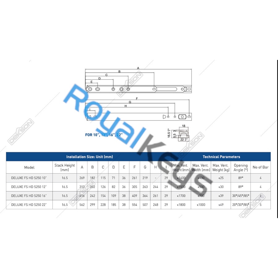 Friction Stay Dekson Dekkson FS HD S250 S 250 10" Inch Engsel Casement