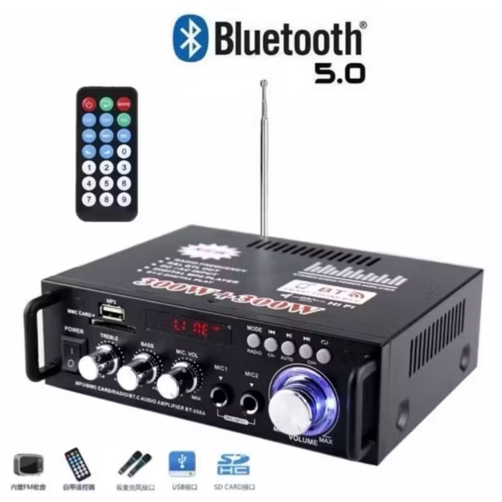 Kerndy Bluetooth EQ Audio Amplifier Karaoke Home Theater FM Radio 600w amplifier