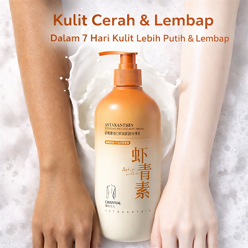 Body Lotion / Lotion Tubuh Pelembap Tidak Lengket & Cepat Meresap dengan Astaxanthin & Vitamin C untuk Kulit Kering & Normal