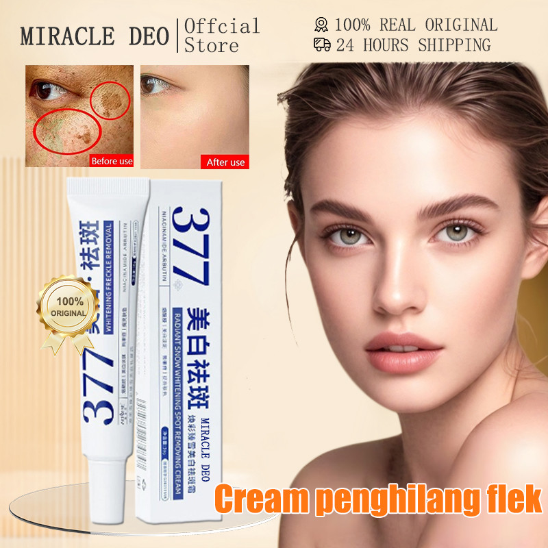 MIRACLE DEO Krim Pemutih Penghilang Flek Hitam membandel Krim Pemutih 377 pemutih wajah glowing cepat Pelembab Wajah Niacinamide Whitening Freckle Cream Mencerahkan warna kulit Remove Melasma Brighten Lighten Dark Spots Melanin Anti-Aging Moisturizing 30g