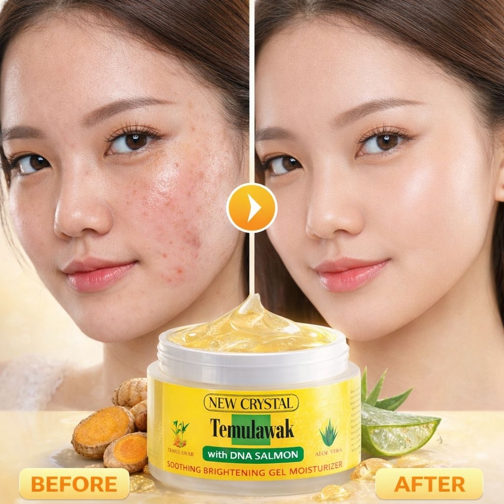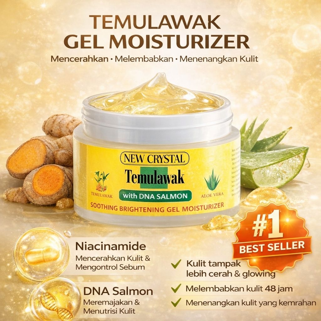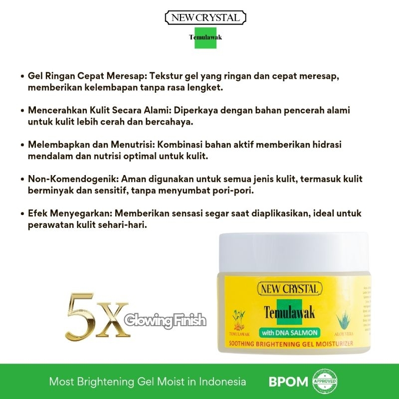 New Crystal Temulawak gel moisturizer glowing pencerah wajah berminyak dan kusam 50gr | With DNA Salmon BPOM