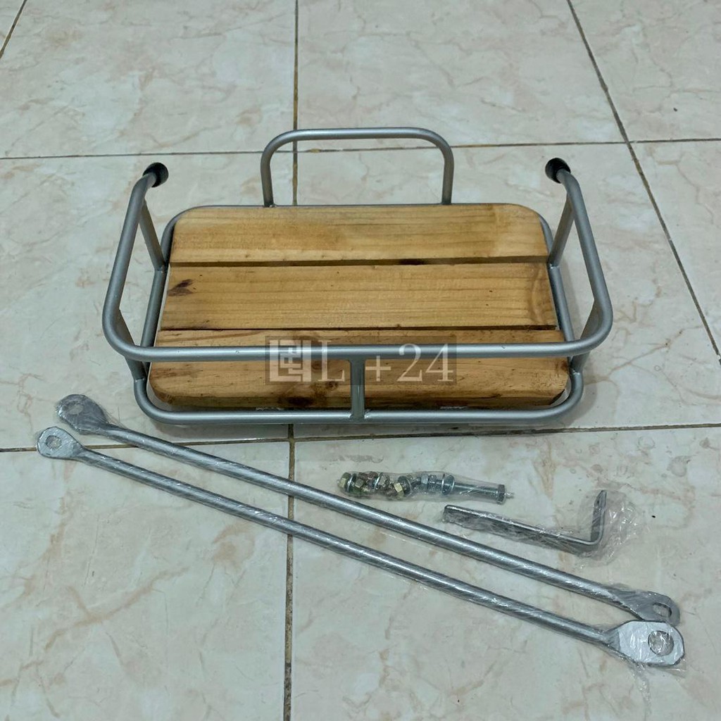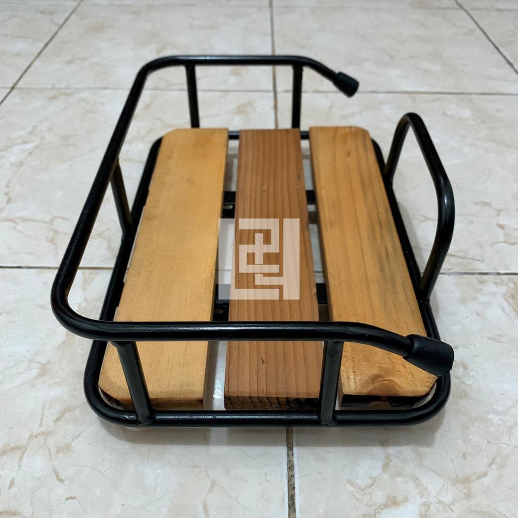 Front Rack Sepeda / Rak Depan Sepeda / Rak Sepeda / Keranjang Sepeda - Steely Basket Wood