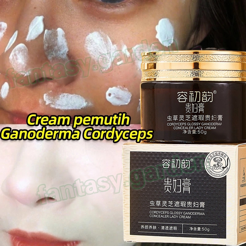 Ganoderma Cordyceps Lightening Day and Night Cream 50g ASLI ORI Ganoderma Cordyceps Whitening Lazy Cream Pelembab Pemutih Wajah Glowing cepat Penghilang Flek Hitam membandel Krim Siang dan Malam Anti Penuaan Kerut Penuaan Concealer tahan air wajah