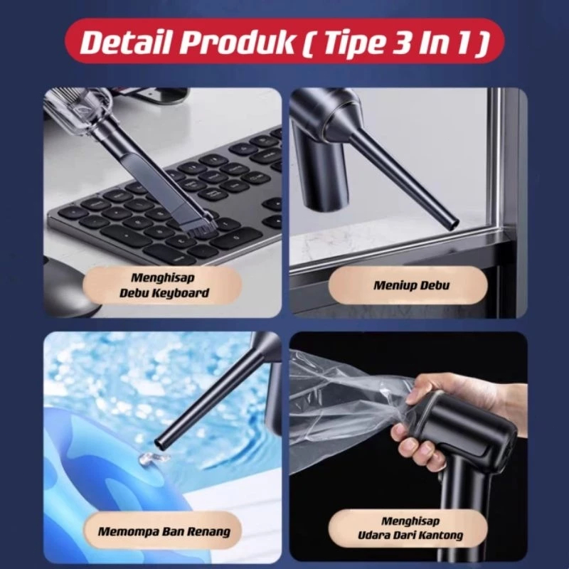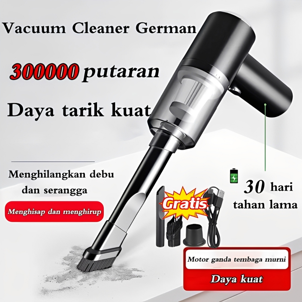 Vacuum Cleaner Tangan 15000PA - Penyedot Debu Kuat 3-in-1, Bisa untuk Mobil & Sofa, Tanpa Kabel & Tanpa Kantong, Bonus 3 Sikat Gratis
