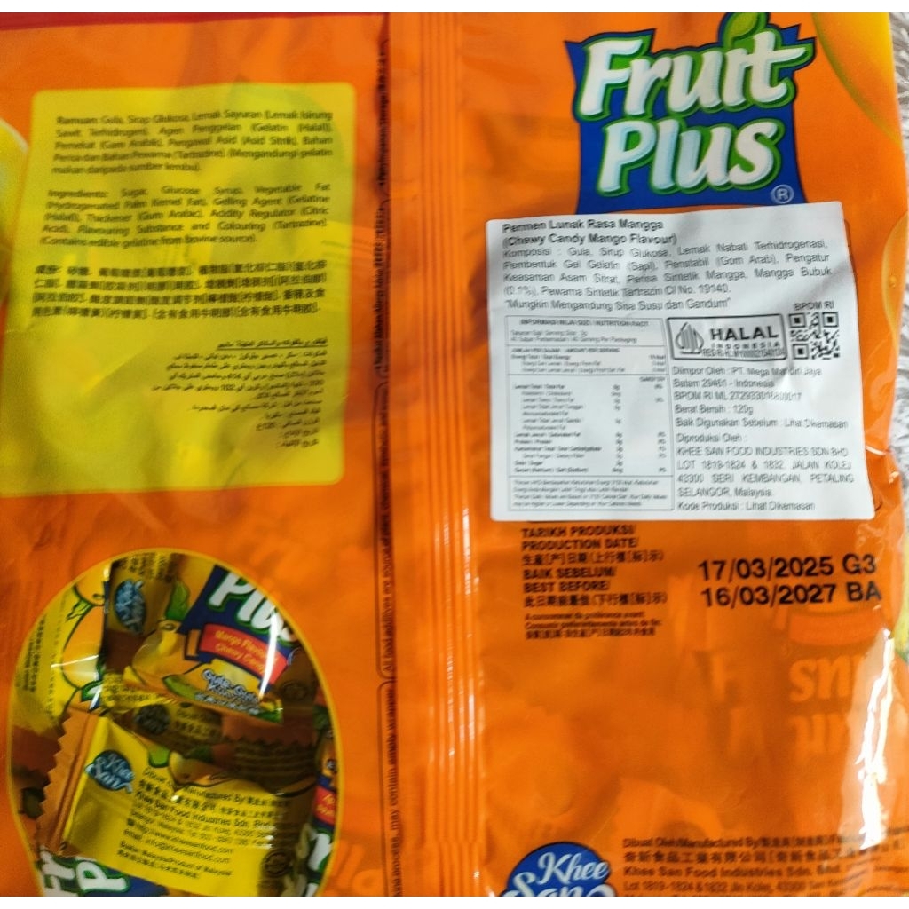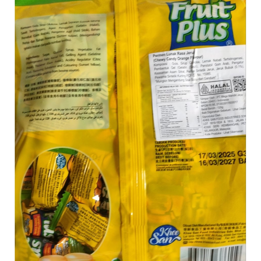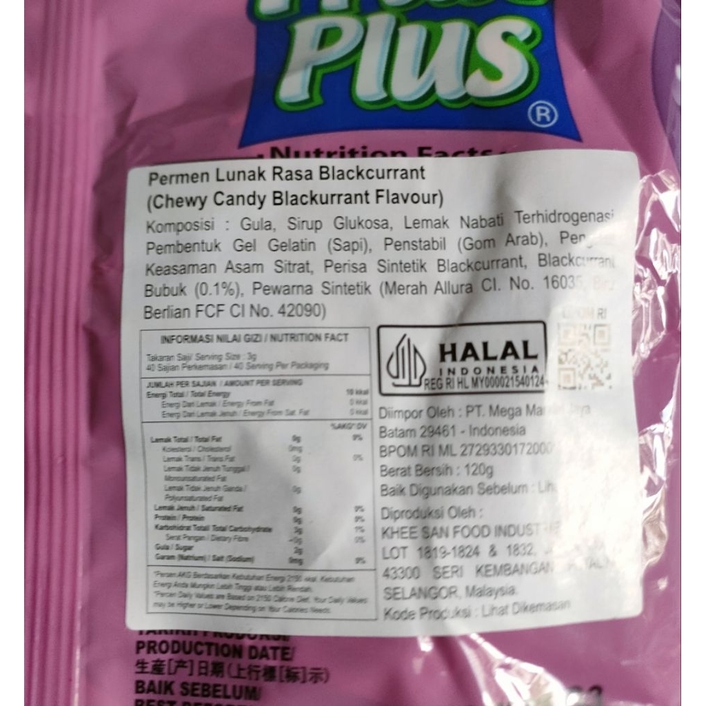 Fruit Plus Chewy Candy/Permen Lunak Rasa Buah 120 gr