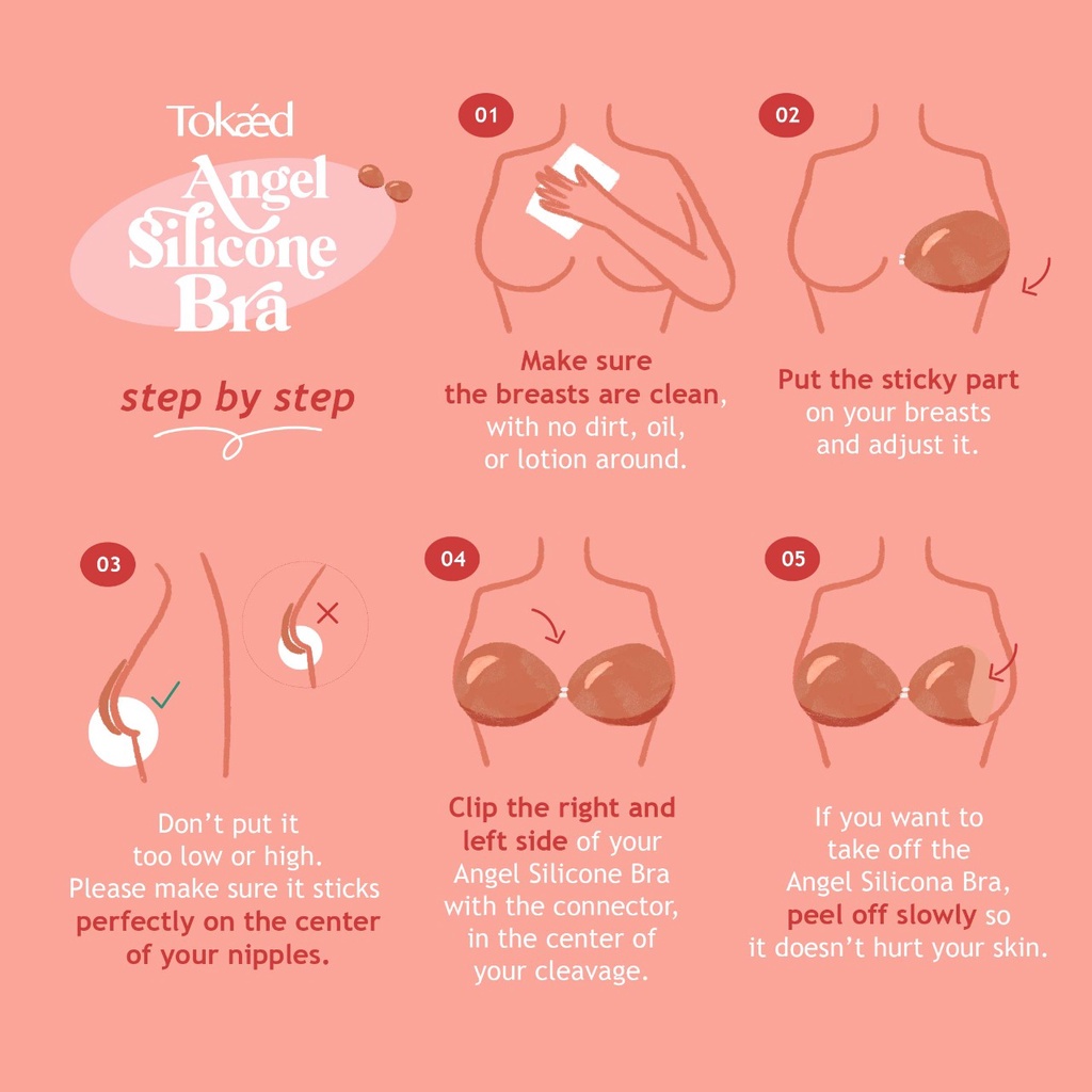 TOKAED Angel Silicone Bra | Front Clip Bra Cup A - D Nipple Payudara BH Fashion Strapless Backless Bra