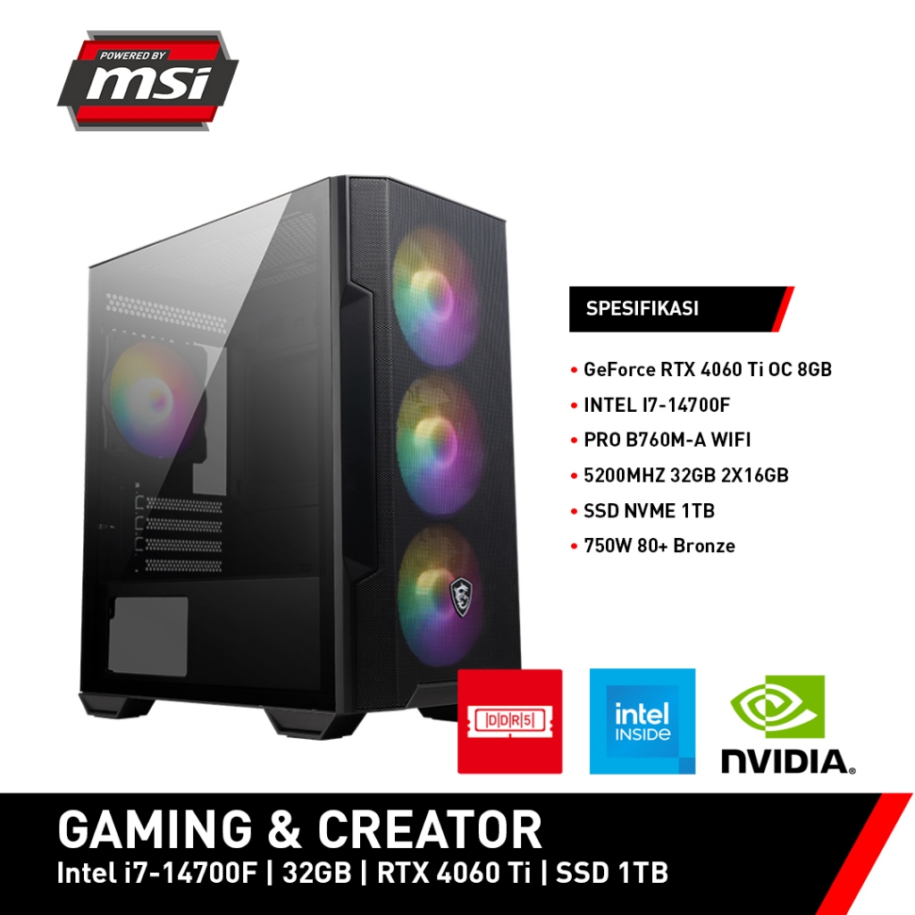 PC Rakitan MSI - GAMING & CREATOR D5 | Intel i7-14700F | 32GB | RTX 4060 Ti | SSD 1TB