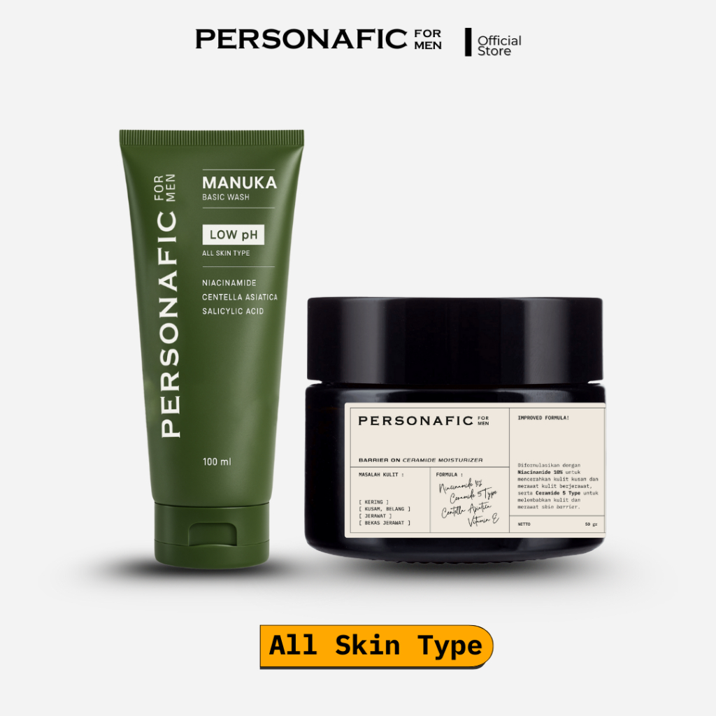 PERSONAFIC Classic Skin Barrier Kit 2-in-1 Face Wash Moisturizer Paket Perawatan Wajah Pria Kulit Kering dan Jerawat