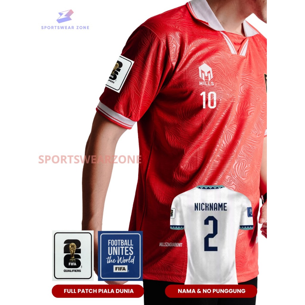 FullPatch Pildun Lengan Kanan & Kiri Baju Jersey Timnas Indonesia Mills Home Away 2024 Unisex Atasan Terbaru Jumbo/Big Size
