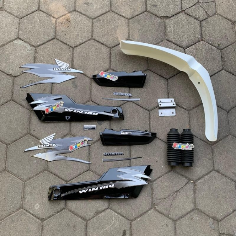 Fullset Cover Body Honda Win 100 Warna Hitam Set Striping List Body Win 100 Tahun 1996 Warna Abu Abu