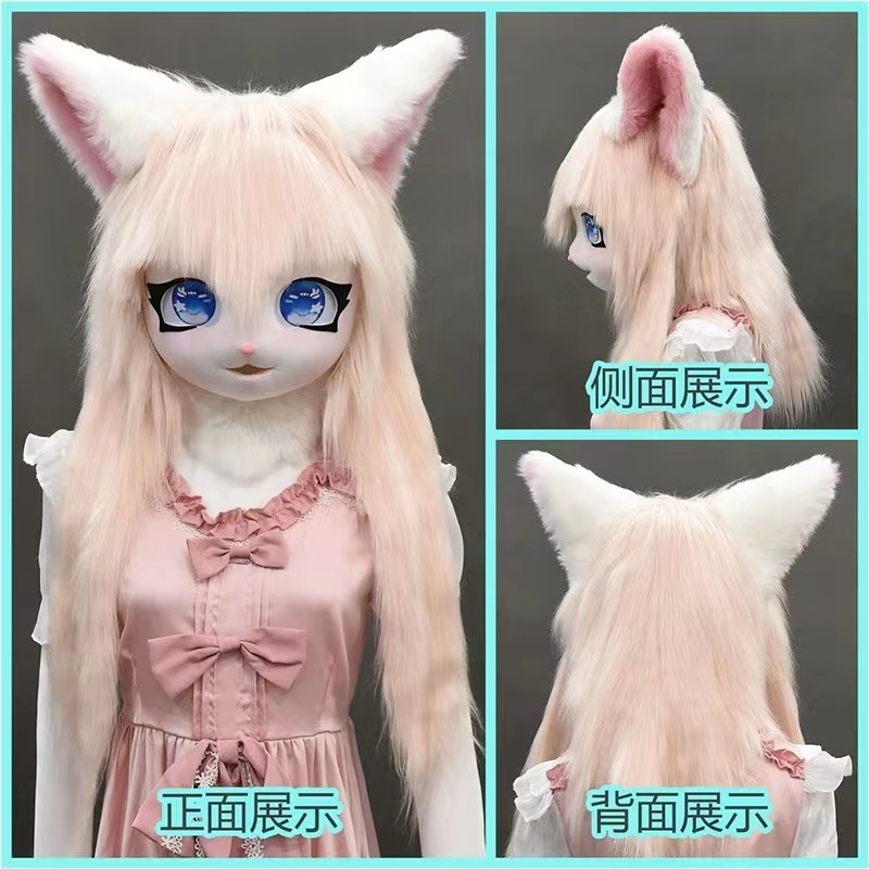 Fursuit Long-hair Animal Head Beast Costume Single-head Kig Full Face Mask Fursuit Furry Head Custom Costumes Lolita Dress UP