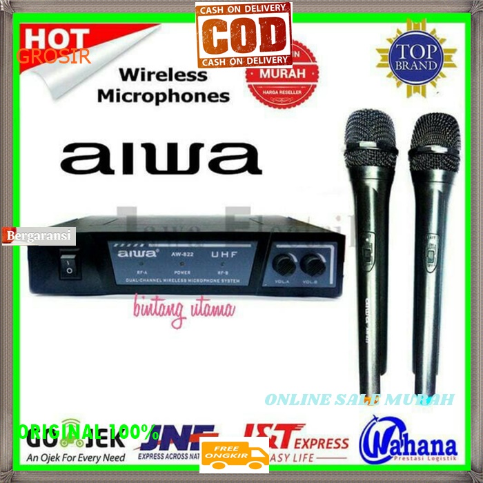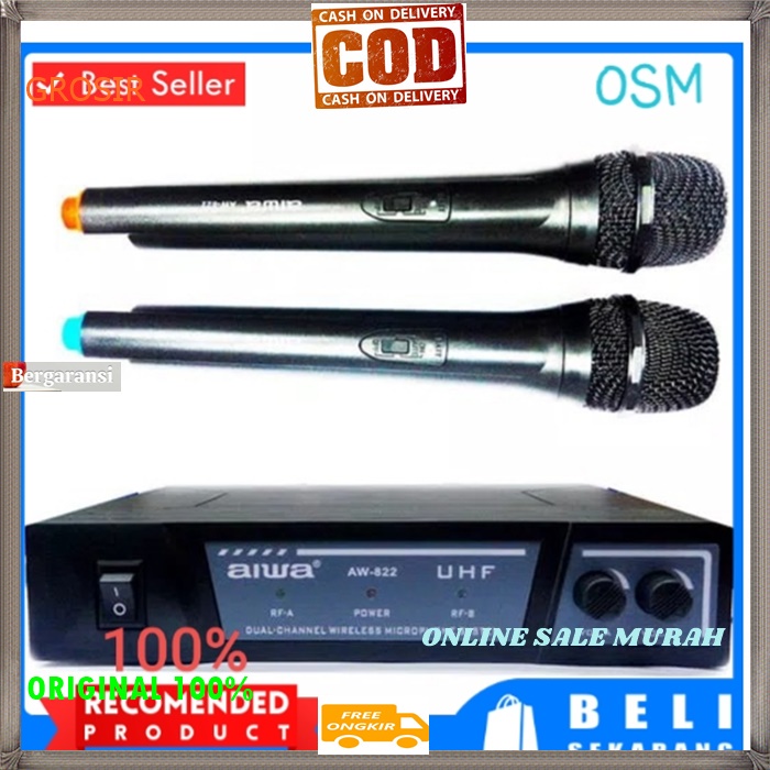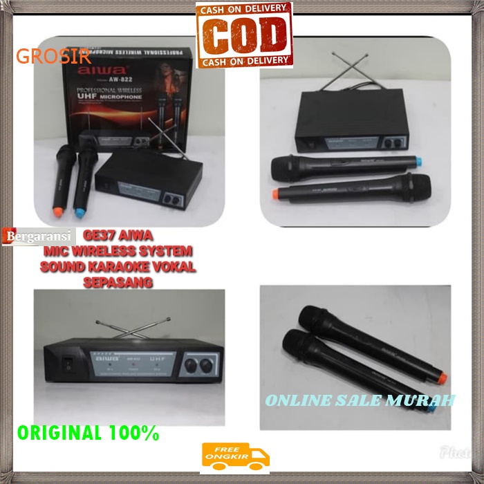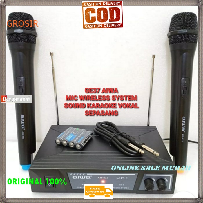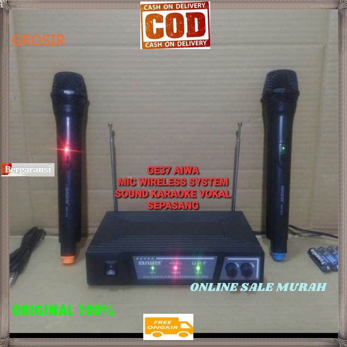G37 AIWA NAIWA MIC KARAOKE WIRELES SYSTEM MIK WIRELES MIKROPHONE PROFESIONAL PRO SUARA AUDIO SOUND VOKAL VOCAL PANGGUNG DJ STUDIO G37, BISA DI SEGALA JENIS SOUND AUDIO SYSTEM , 1 RECEIVER+2 MIC PEGANG JARAK 20-30 METER