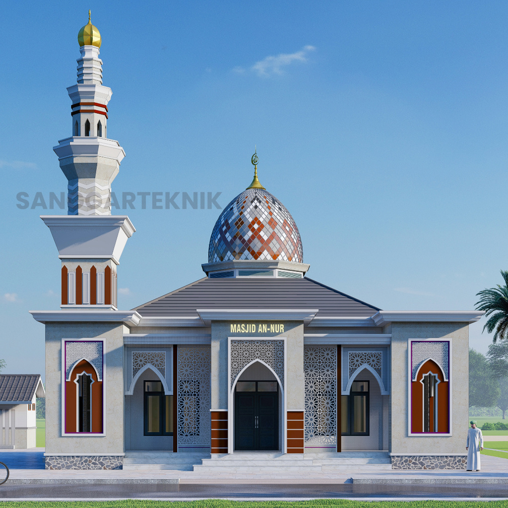 GAMBAR KERJA DESAIN MASJID 14x14 SUDAH TERMASUK TERAS