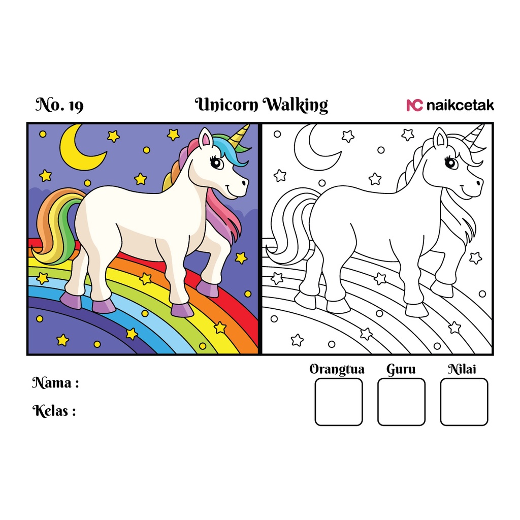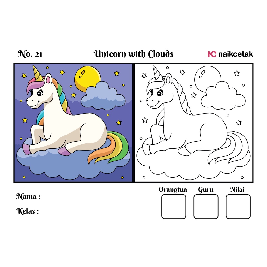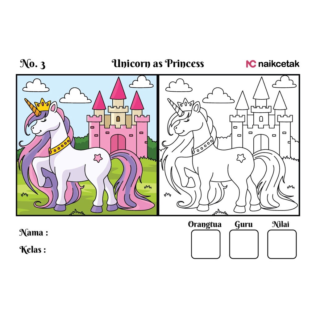 GAMBAR & SKETSA MEWARNAI - TEMA UNICORN