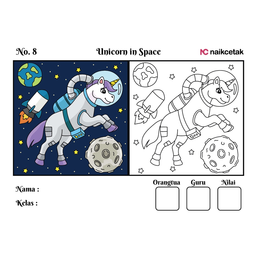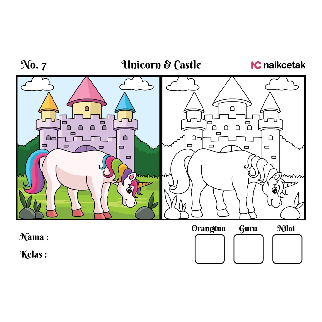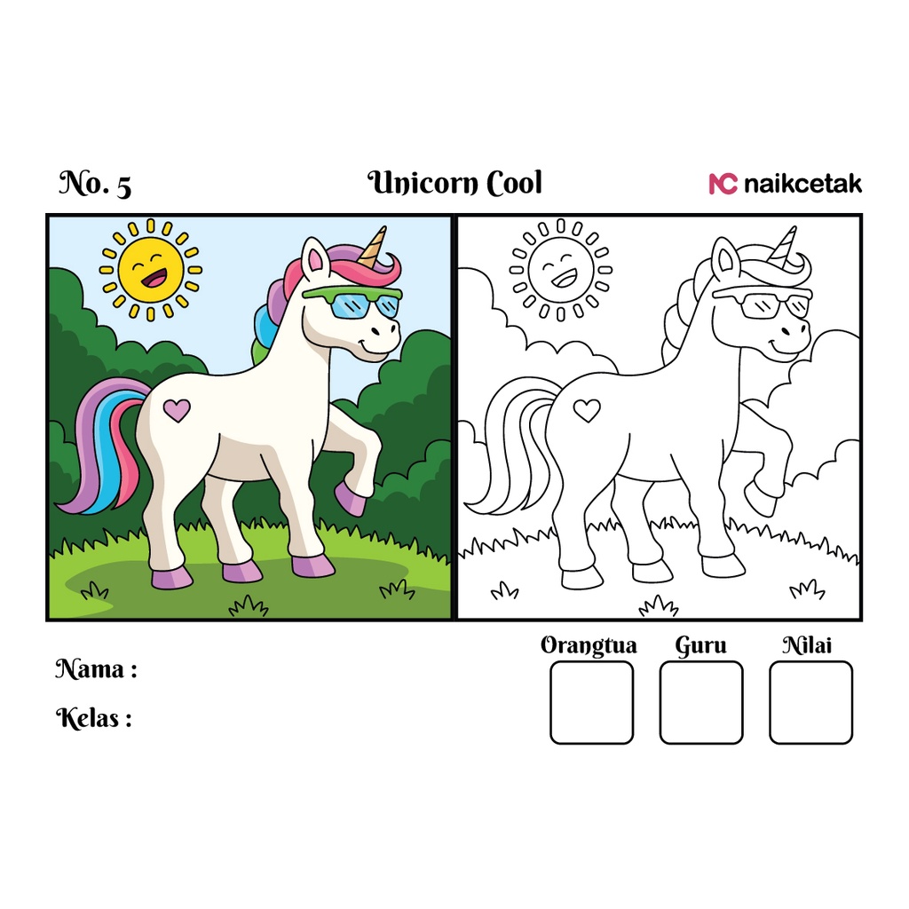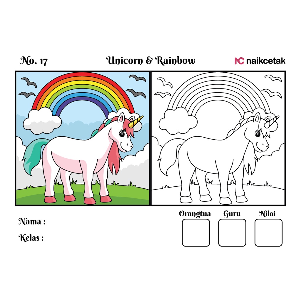 GAMBAR & SKETSA MEWARNAI - TEMA UNICORN