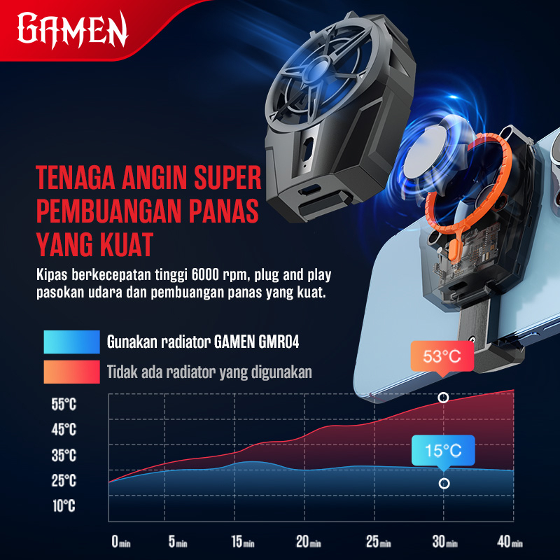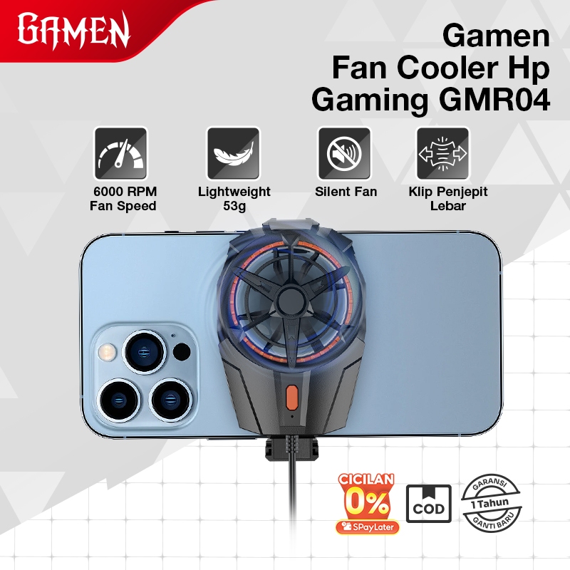 GAMEN GMR04 Fan Cooler HP Gaming 6000 RPM – Radiator Pendingin HP Semikonduktor, Silent Fan, Fast Cooling, Kipas HP Gaming dengan Klip Penjepit, Cocok Semua HP Android/iPhone