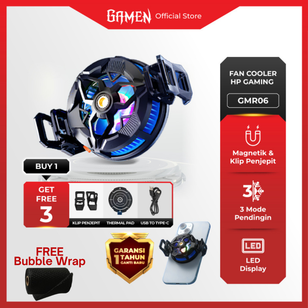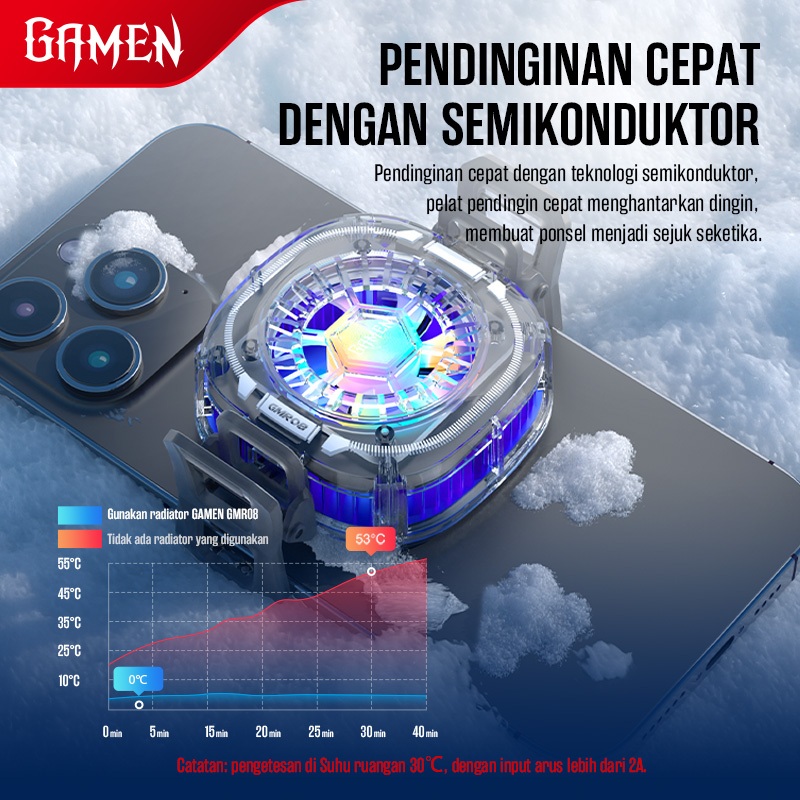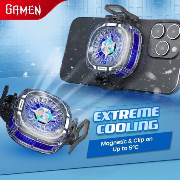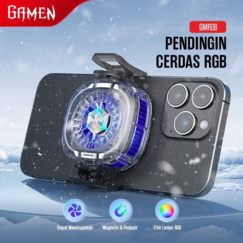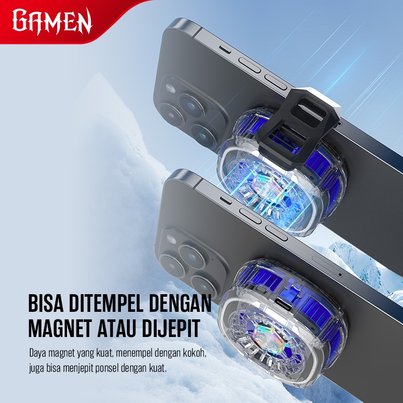 GAMEN Fan Cooler HP Gaming Magnetic RGB Up to 5°C GMR08 Dengan Klip Penjepit Pendingin HP Semikonduktor Untuk iPhone / Android Cooling Fan Original