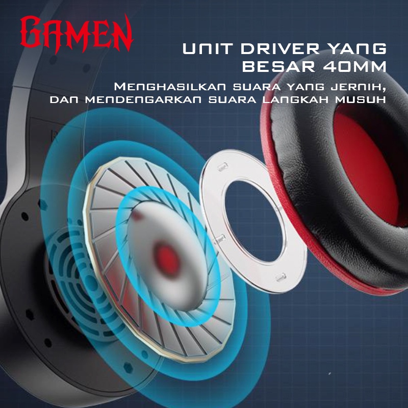 GAMEN Headset Gaming GH100 40mm Driver 3D Surround Sound USB/AUX 3.5mm Soft Headband Mic 360° Headset Kabel Full Bass Untuk PC Handphone Laptop Headphone Gaming Original