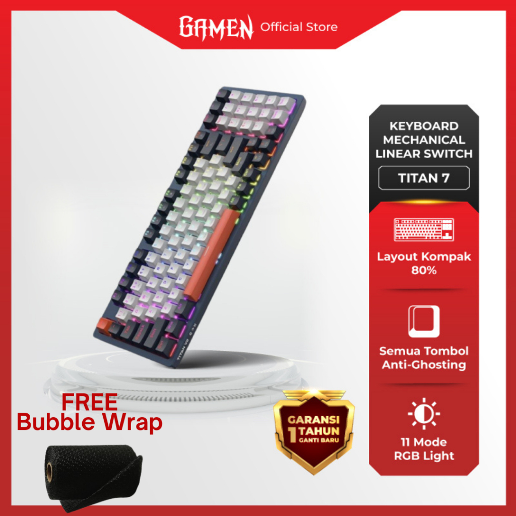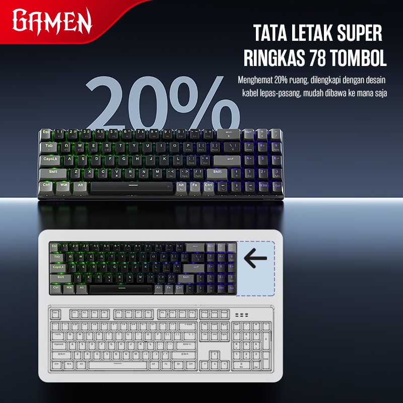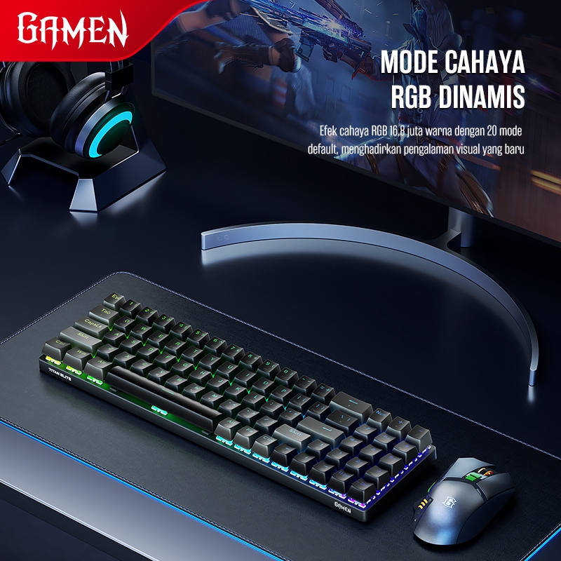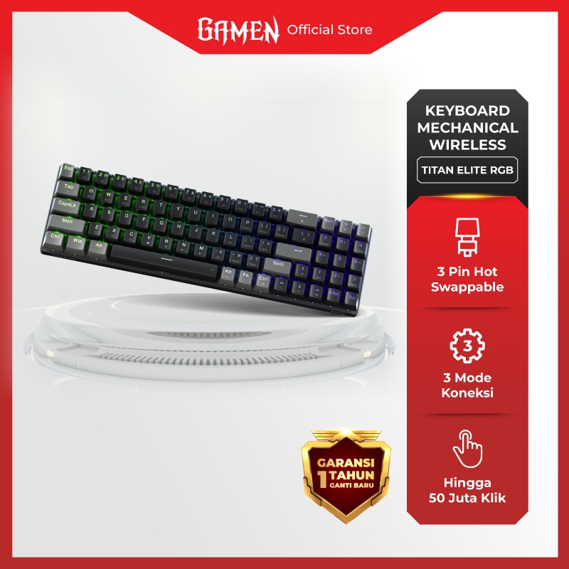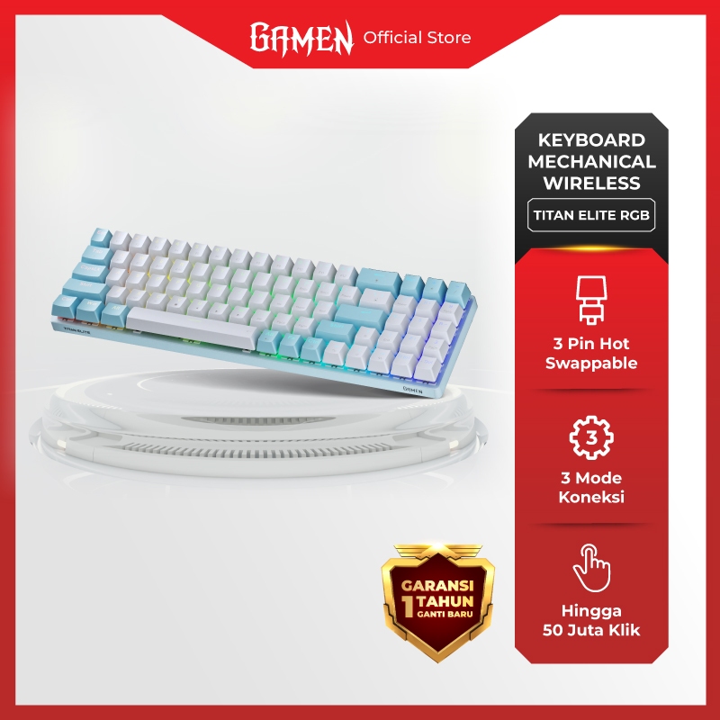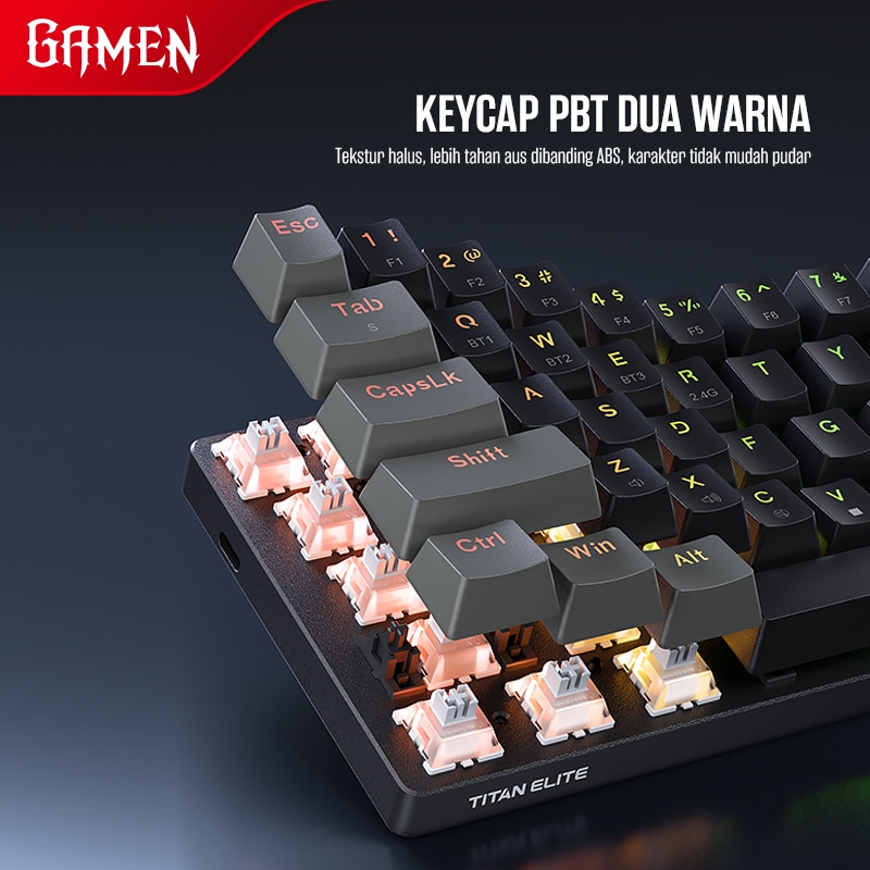 GAMEN Titan Elite Keyboard Mechanical Wireless Gaming RGB 3 Pin Hot-Swappable 78 Keys 3 Mode Connection Bluetooth 5.0 / 2.4G / Wired Ergonomic Layout Original