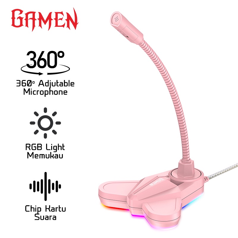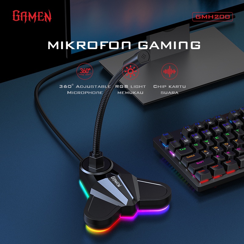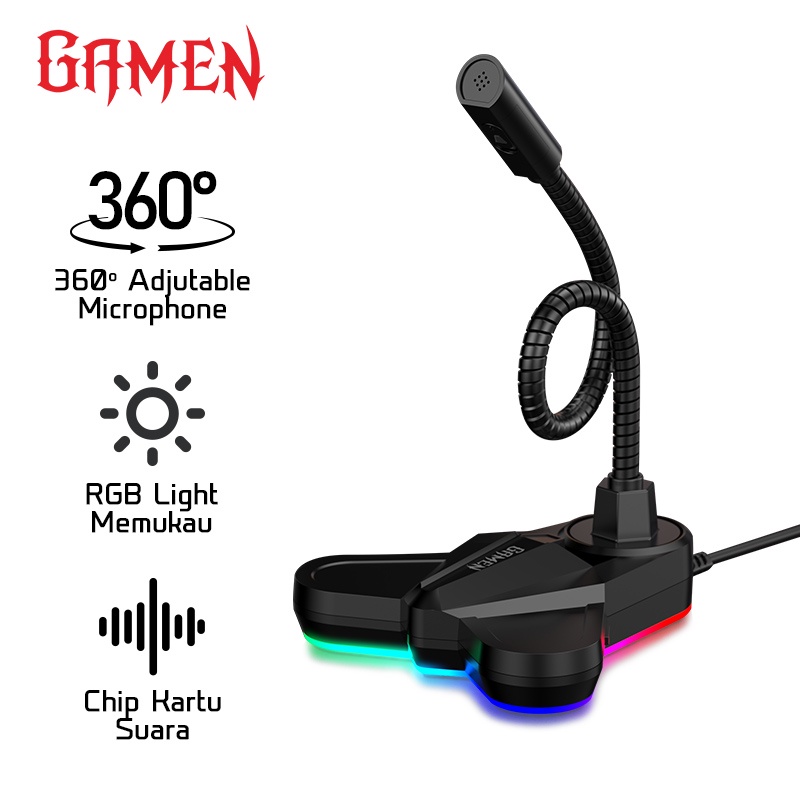 GAMEN Microphone Gaming RGB Lightning Plug and Play Decoding Chip MIC For Live Streaming E-Sport Meeting Original - Garansi 1 Tahun - GMH200