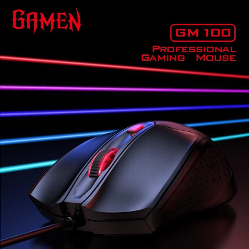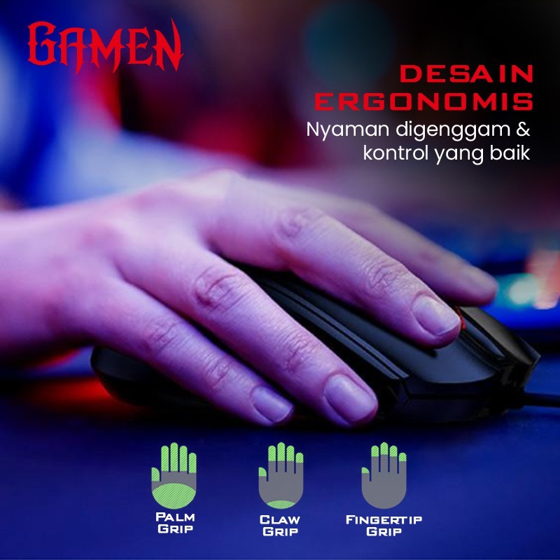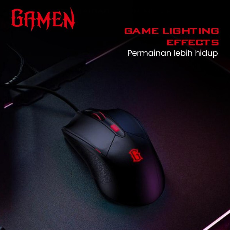 GAMEN Mouse Kabel Gaming GM100 RGB 2000DPI Ergonomis Mouse 3 Level DPI 8 Juta Klik untuk Laptop PC Komputer Keyboard Mouse 1 Set