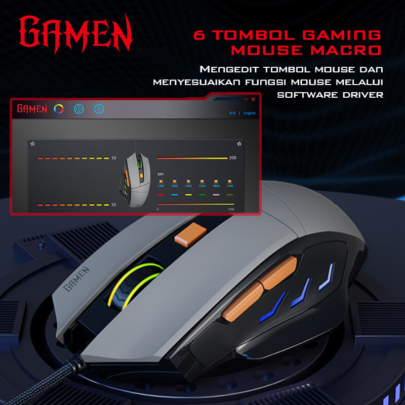 GAMEN Mouse Gaming RGB GM300 Mouse Kabel Portable Optical 6 Macro Button 7200 DPI High Performance Mouse Gaming Wired Mouse Laptop Komputer