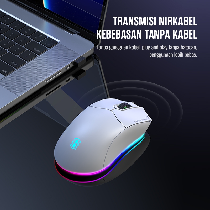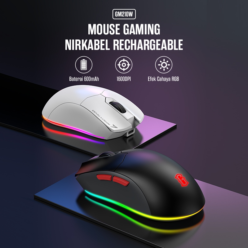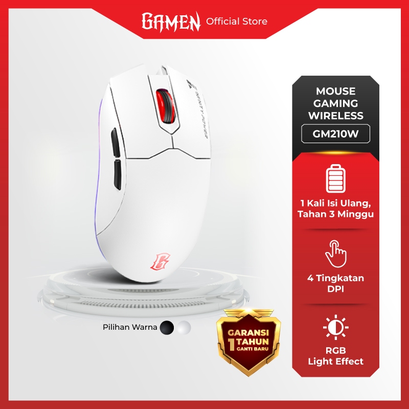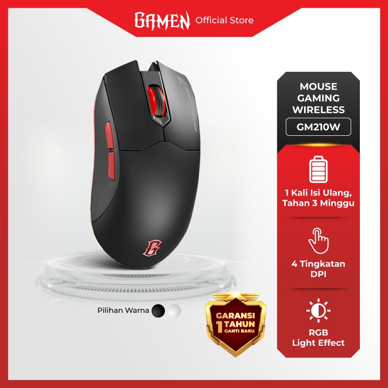 GAMEN GM210W Wireless Gaming Mouse – Rechargeable Type-C Fast Charging, 1600 DPI Sensor, RGB Lighting, 6 Macro Buttons untuk Laptop & PC