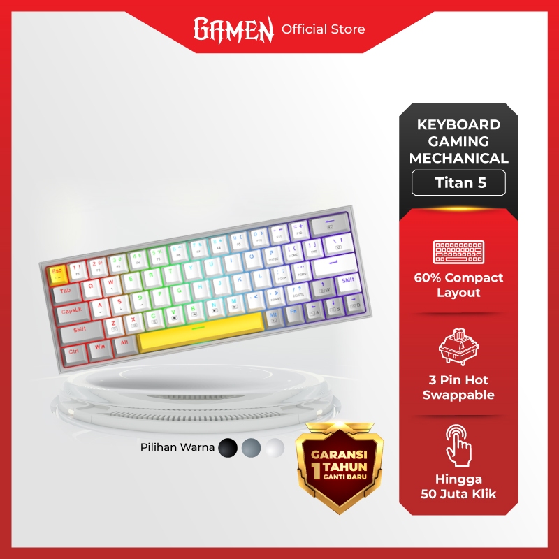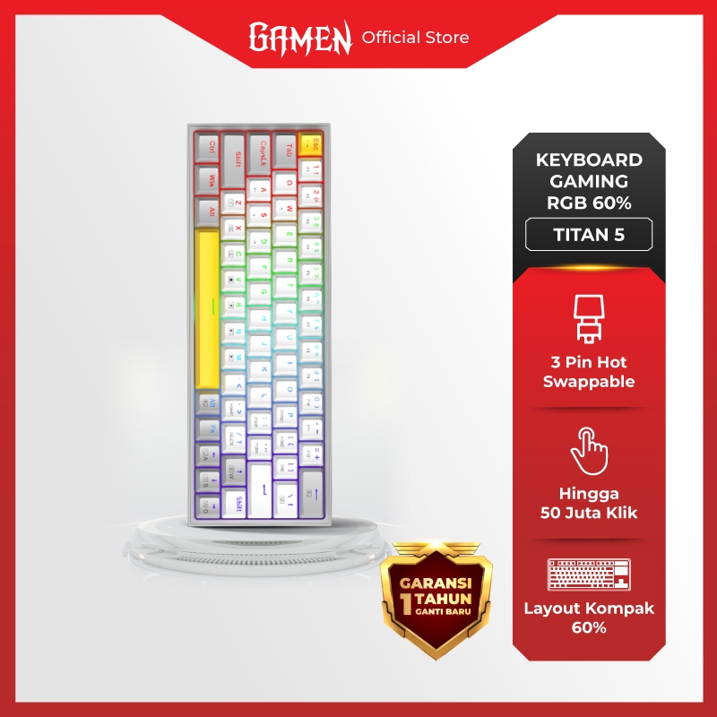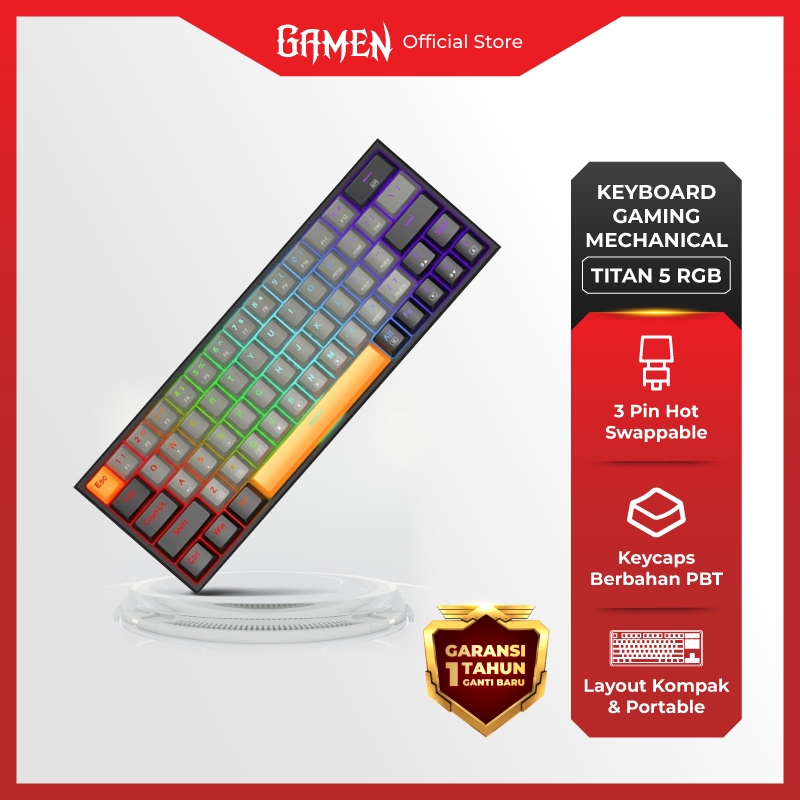 GAMEN Titan 5 Keyboard Gaming Mechanical 60% Layout RGB Full Light Hot-Swappable Ergonomic Design Mini Keyboard Mechanical Gaming Original