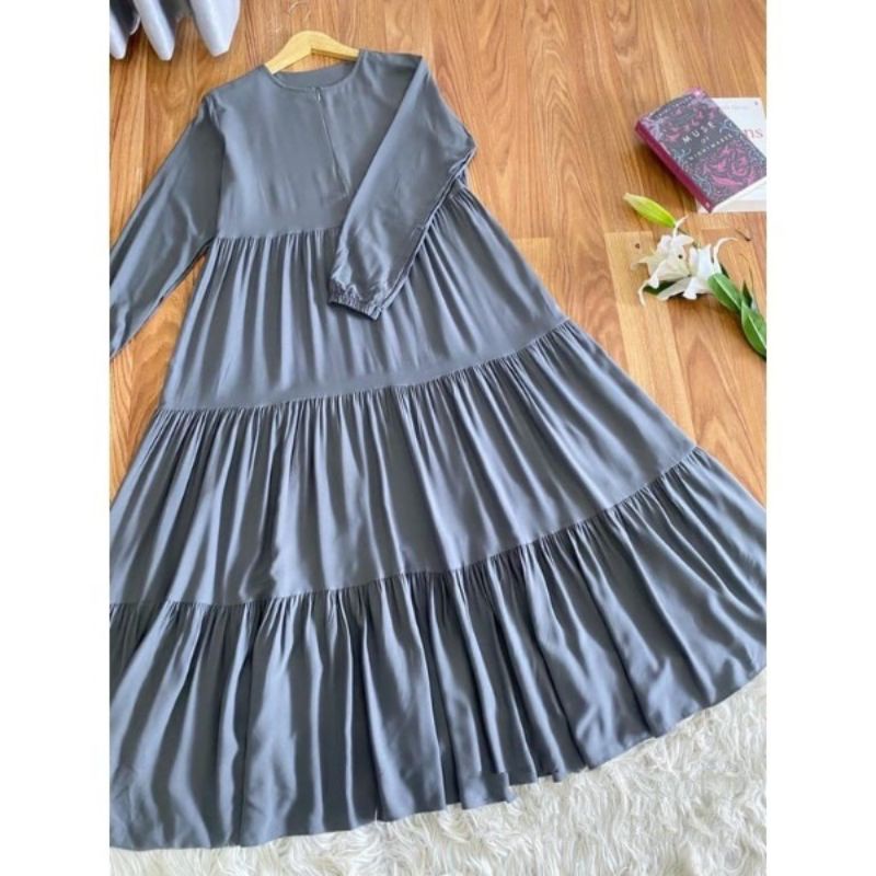 Homey Dress Premium Gamis Syari Busui Ruffle Gamis Rayon Polos