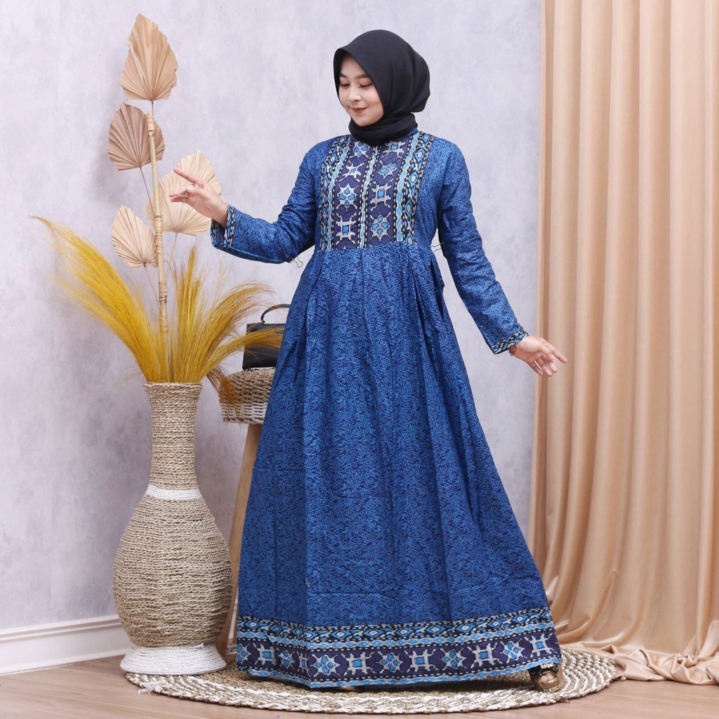 GAMIS MOTIF BATIK TERBARU 2022 MOTIF SONGKET BIRU