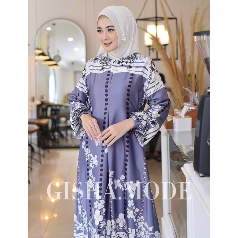 GAMIS TERATAI LENGAN BALON SILK PREMIUM Motif Ready Jumbo LD 110 LD 120 Sampai LD 130cm Dress muslim